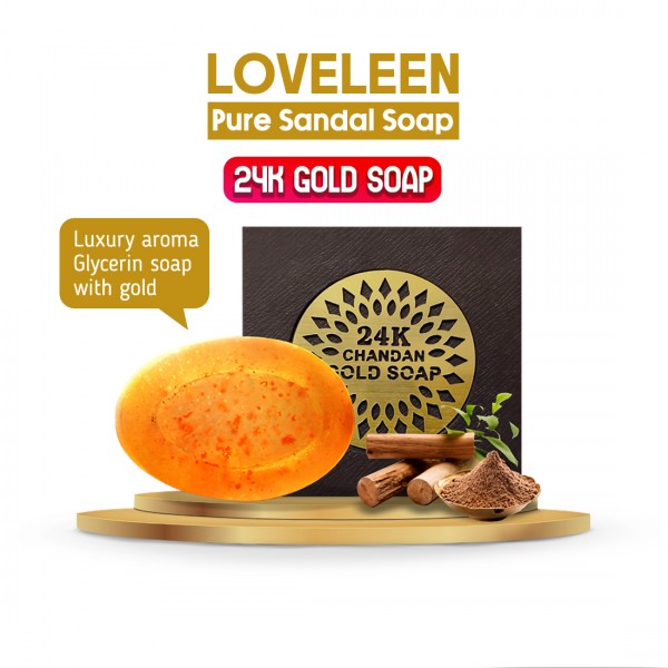 Loveleen 24 k Chandan Gold Soap is a hand-crafted soap made using latest innovative Liquid Crystal Freezing Technology, which freezes gel into a bating bar.
